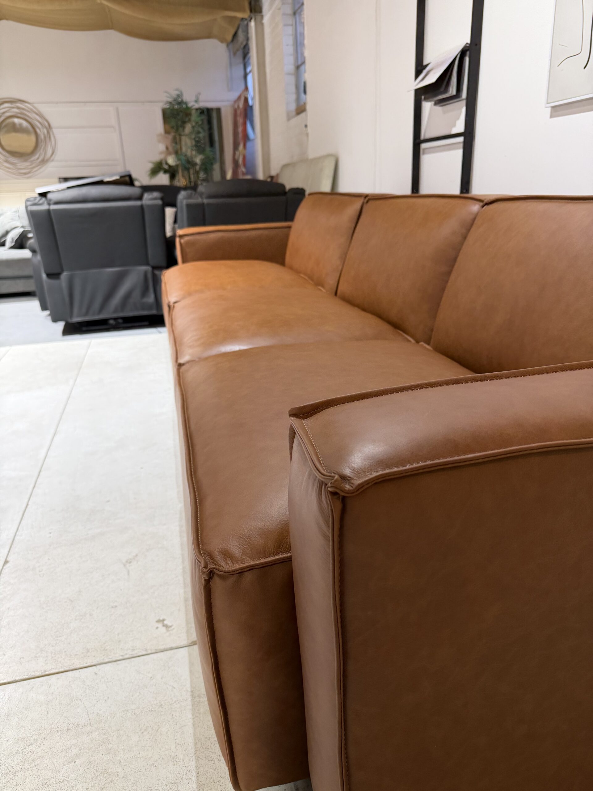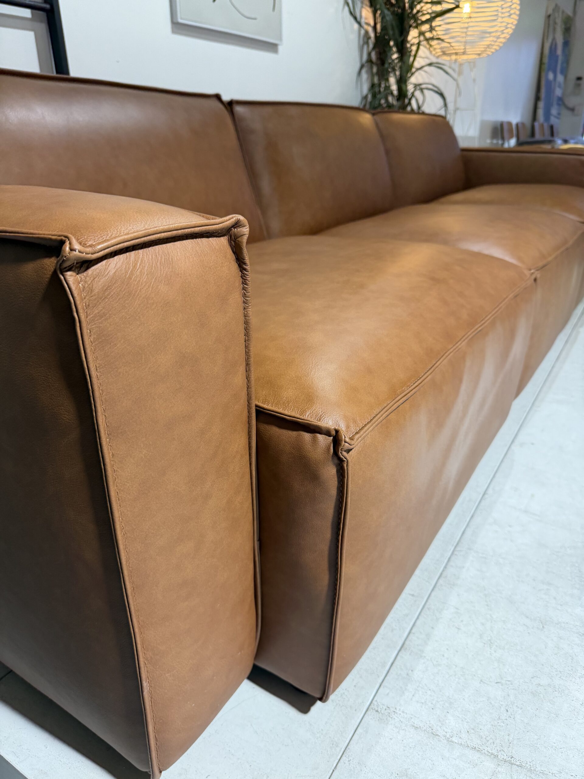 The Kito Leather Sofa is crafted with a focus on both comfort and durability. Upholstered in top grain cowhide leather on all contact surfaces, it provides a supple, premium feel that ages beautifully, developing unique character over time. The rich tan finish brings warmth and sophistication, making it a versatile centerpiece for modern and classic interiors alike.