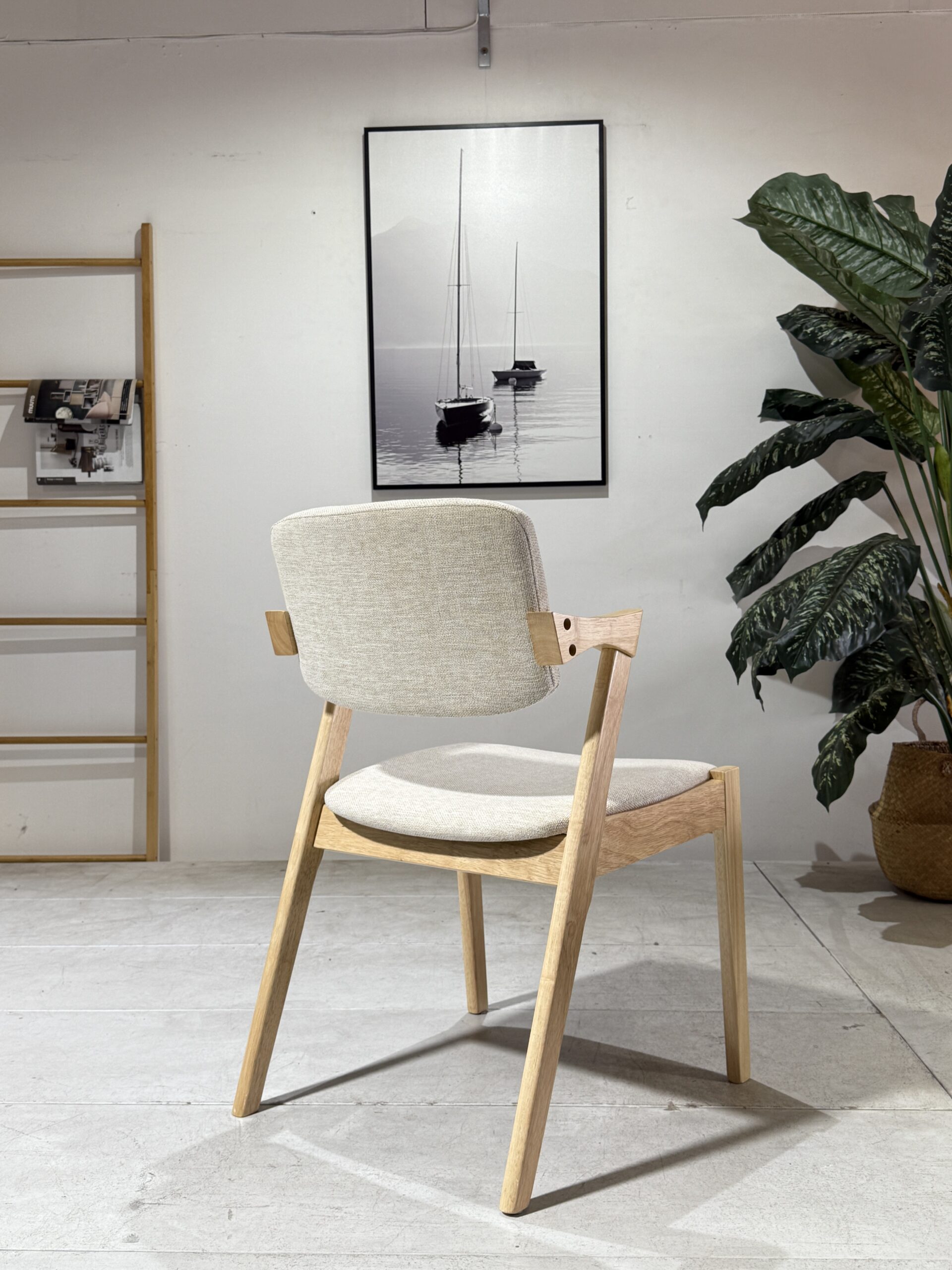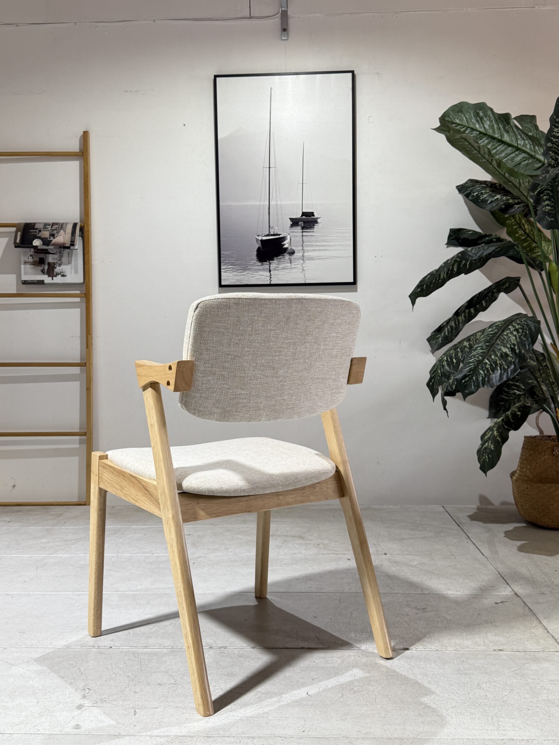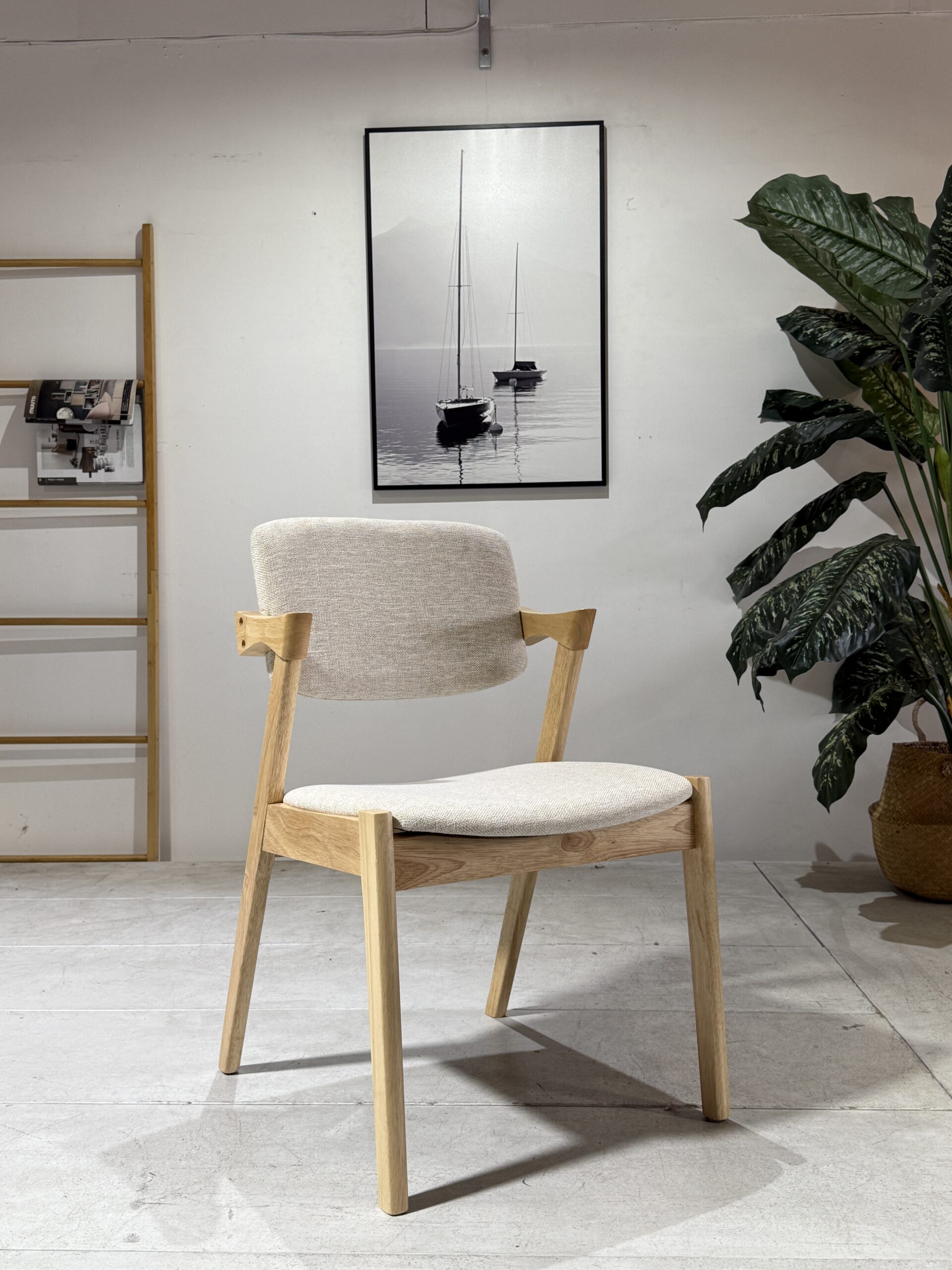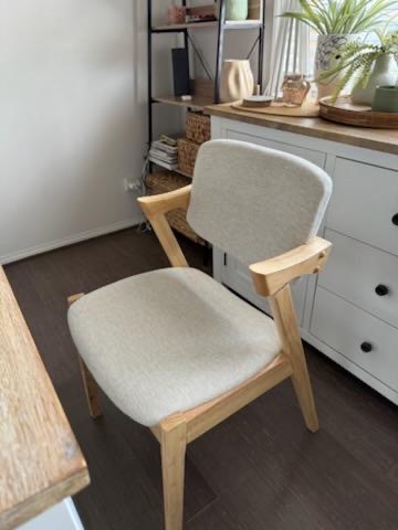 The Ash Dining Chair is designed with a balance of comfort and natural charm. Upholstered in soft beige fabric, it provides a neutral tone that blends effortlessly into both modern and traditional dining spaces. The solid natural wooden legs add warmth and organic texture, complementing the cushioned seat and supportive backrest. Built with durability in mind, this chair is ideal for daily family meals, entertaining, or even as an accent chair in living areas. With its clean design and inviting feel, the Ash Dining Chair is a practical yet stylish addition to any home.
