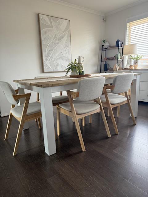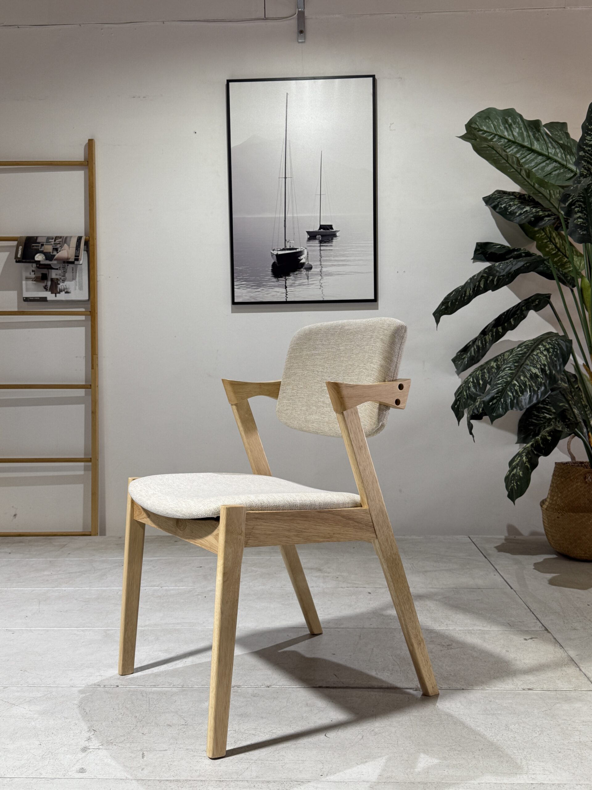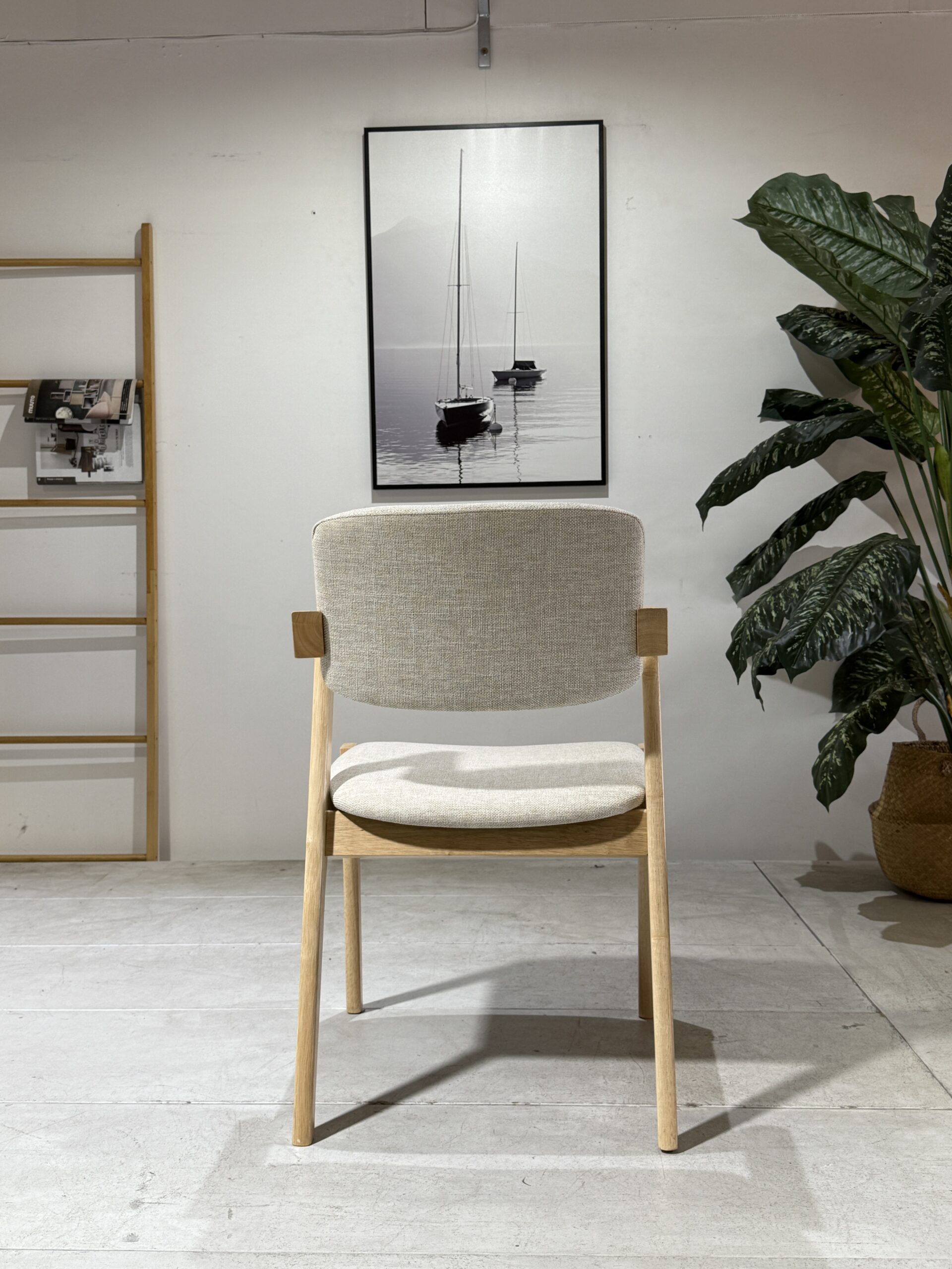 The Ash Dining Chair is designed with a balance of comfort and natural charm. Upholstered in soft beige fabric, it provides a neutral tone that blends effortlessly into both modern and traditional dining spaces. The solid natural wooden legs add warmth and organic texture, complementing the cushioned seat and supportive backrest. Built with durability in mind, this chair is ideal for daily family meals, entertaining, or even as an accent chair in living areas. With its clean design and inviting feel, the Ash Dining Chair is a practical yet stylish addition to any home.