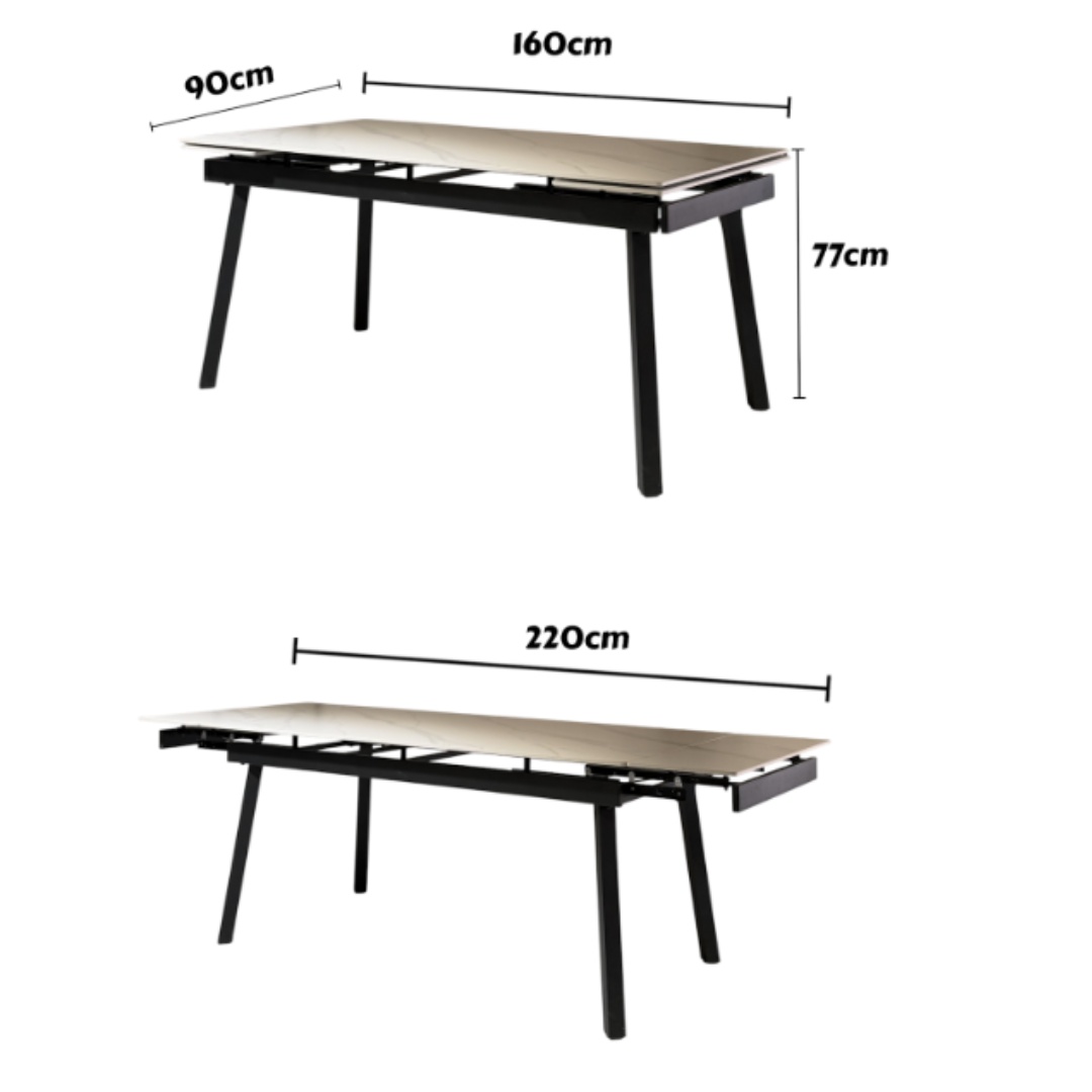 The strong frame ensures stability, while the ceramic top adds a touch of modern elegance. Perfect for family meals, dinner parties, or everyday dining, the Bentleigh Extendable Table blends practicality with timeless design, making it an ideal centerpiece for your dining space.