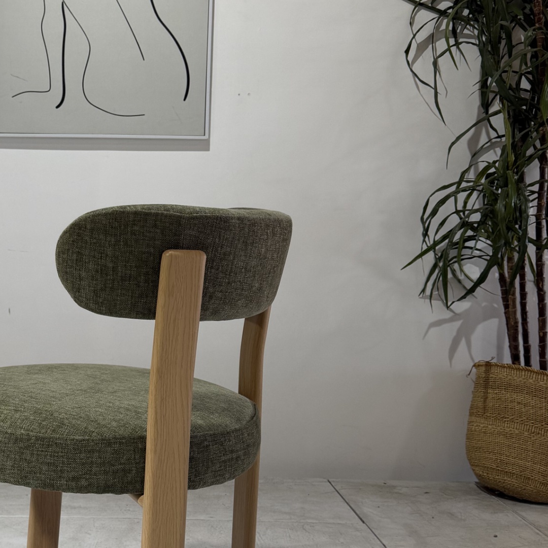The Carmo Dining Chair is a perfect blend of style, comfort, and practicality. Featuring a soft green fabric upholstery, this chair adds a pop of colour to your dining space while maintaining a sleek, contemporary look.