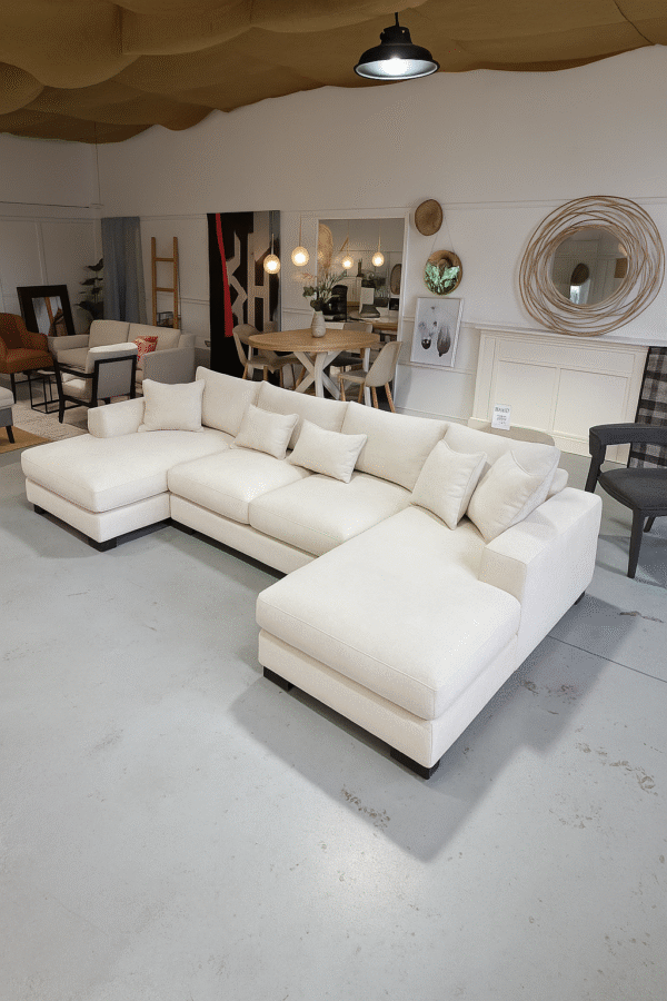 Kaylie – Double Chaise Fabric Sofa with Ottomon | Beige