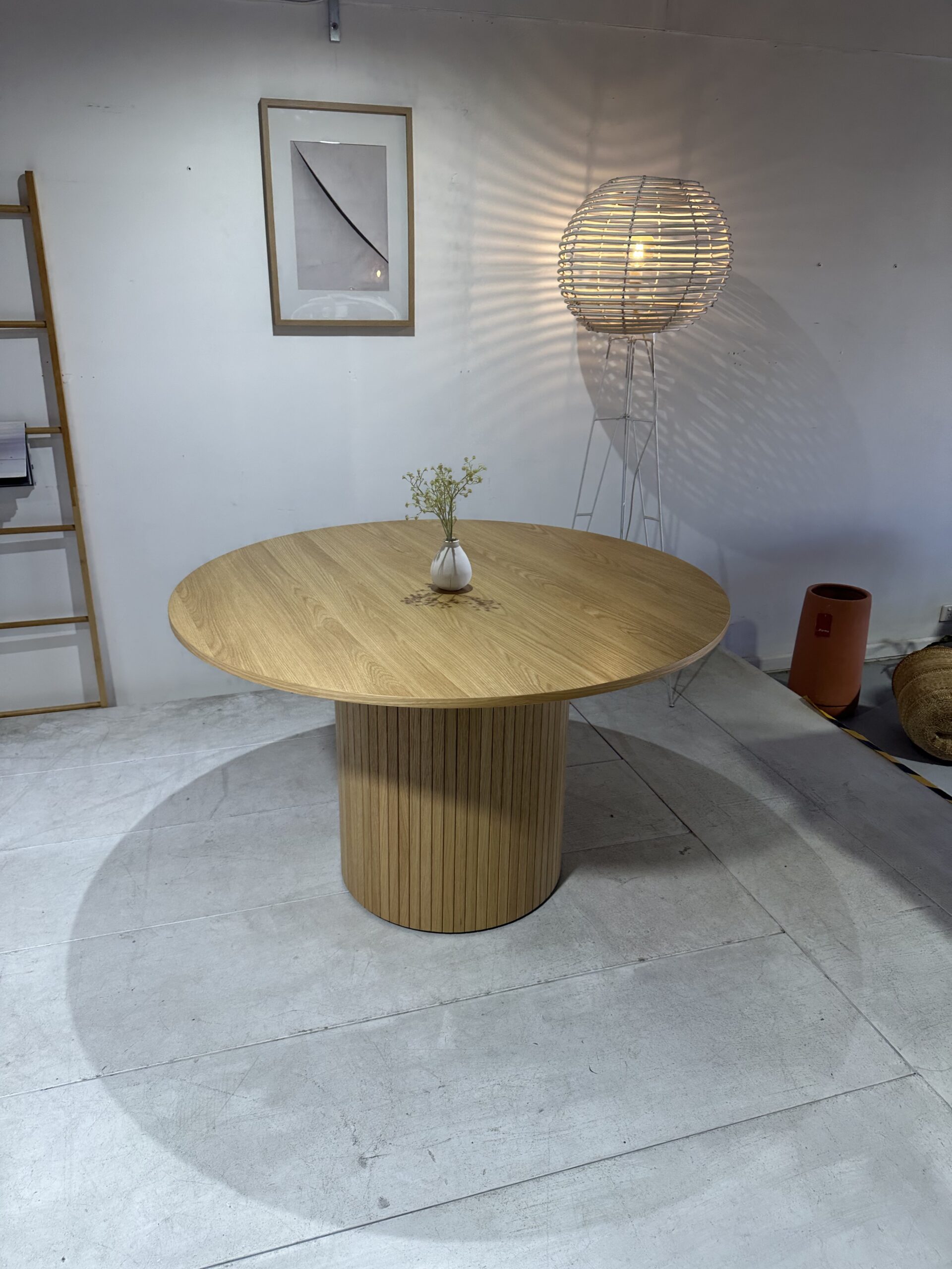 Crafted from durable engineered timber with a natural wood veneer, the Marina table delivers long-lasting stability while maintaining a light, clean aesthetic. Its 150 cm size comfortably seats 4–6 guests, making it perfect for family meals, small gatherings, and apartment living.