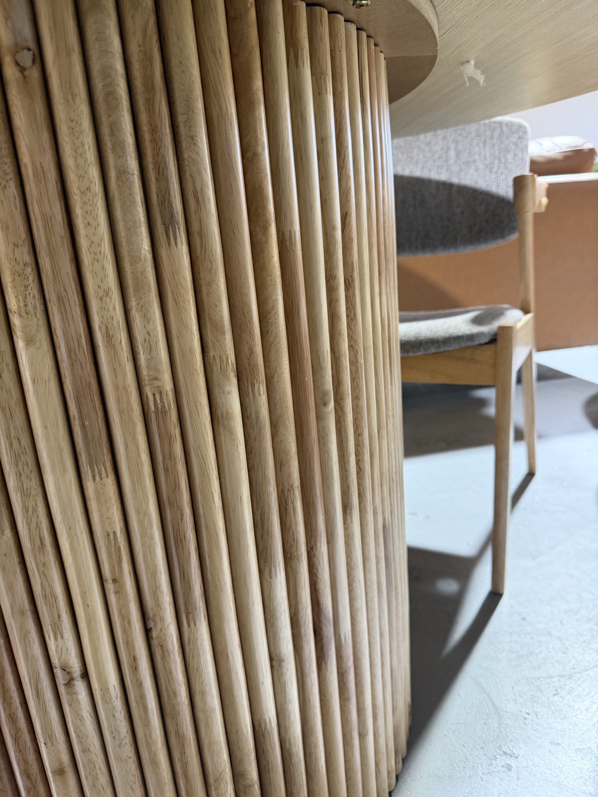 The minimalist leg design provides excellent support without feeling bulky, ensuring the table is both functional and visually balanced. With its versatile natural finish, the Marina dining table pairs effortlessly with fabric, timber, or PU dining chairs.