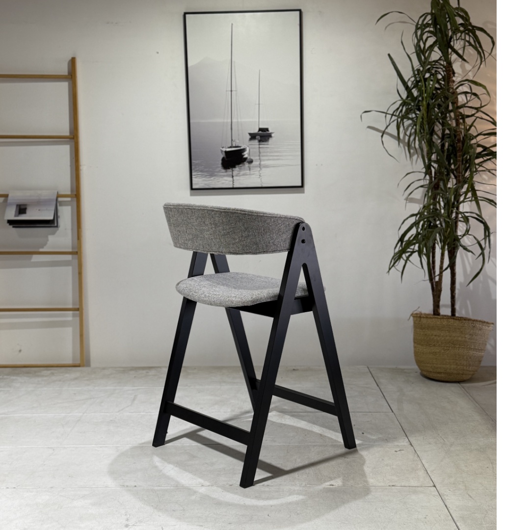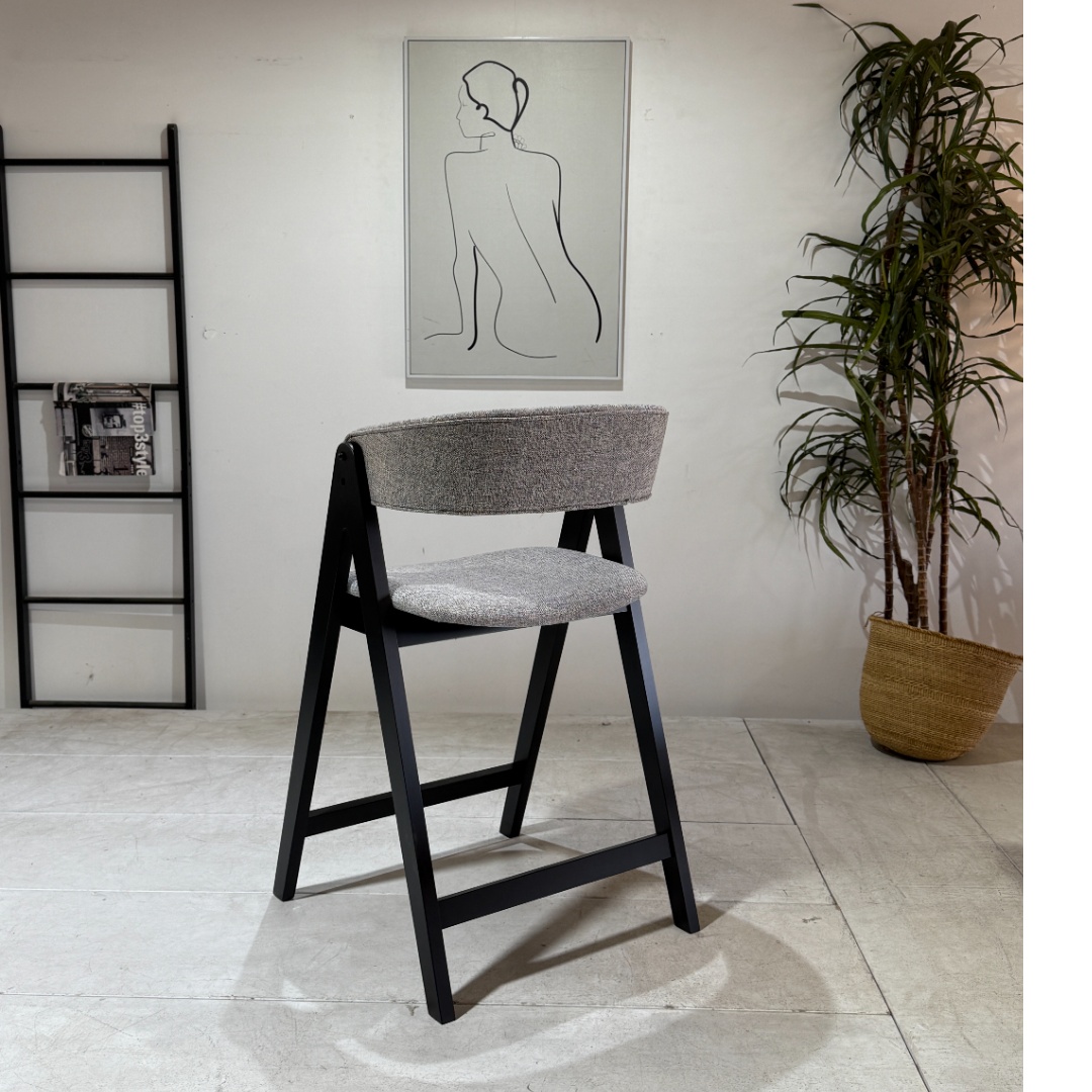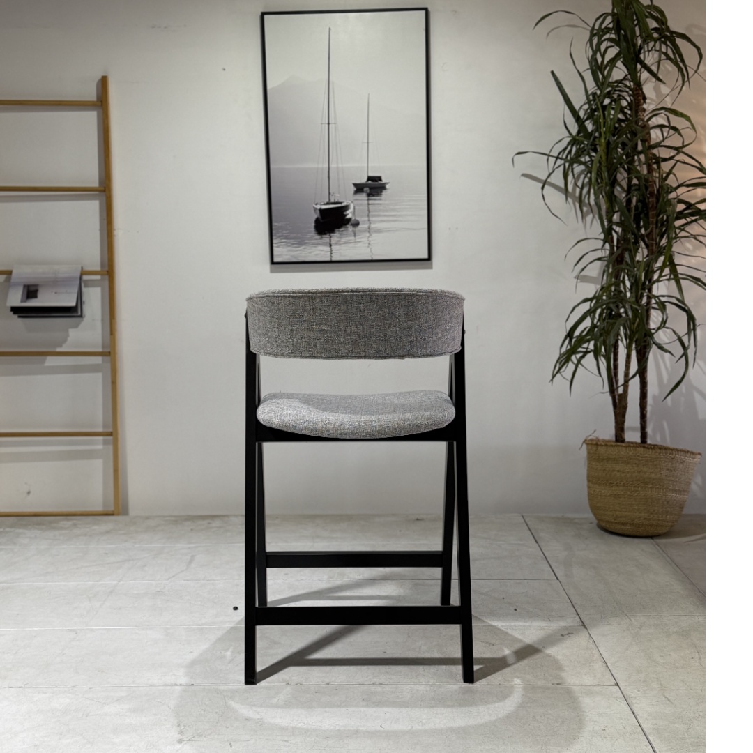 The Nicole Bar Stool is designed for both style and functionality. Upholstered in soft grey fabric, it brings a neutral tone that pairs seamlessly with contemporary and classic interiors. The black wooden legs add strength and contrast, creating a bold, modern aesthetic that elevates any bar or counter setting.