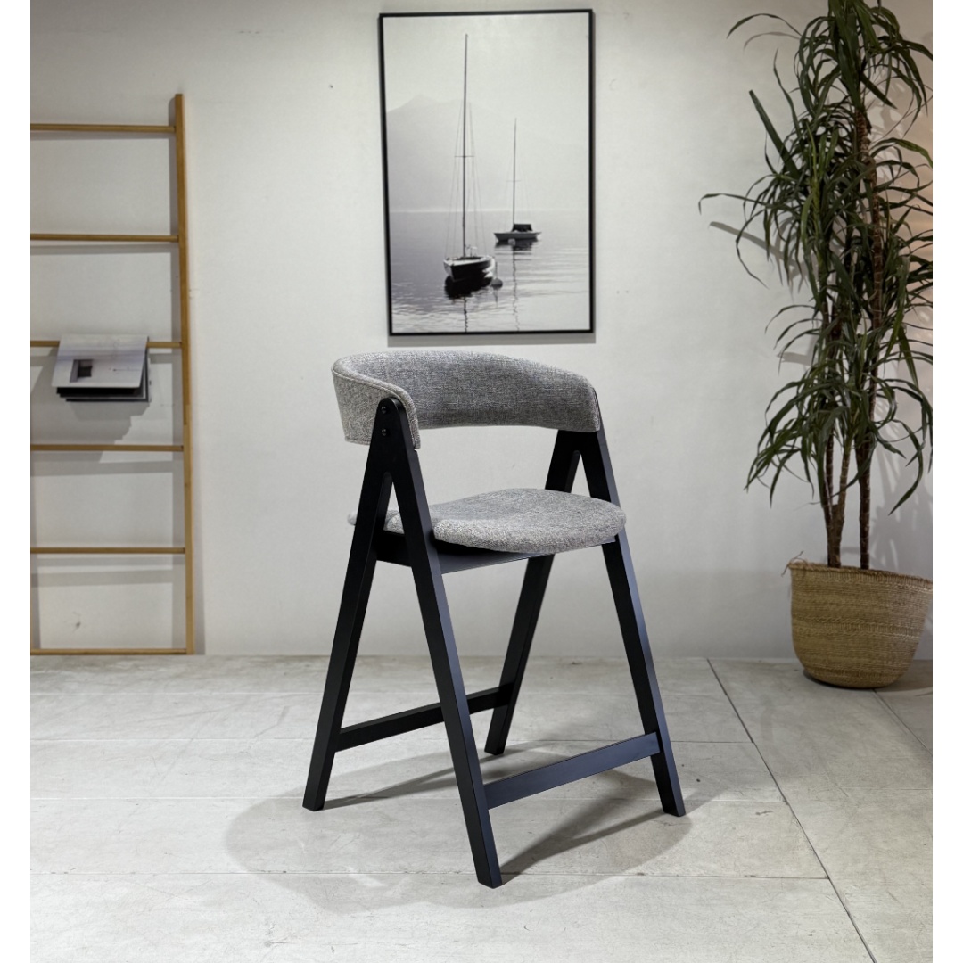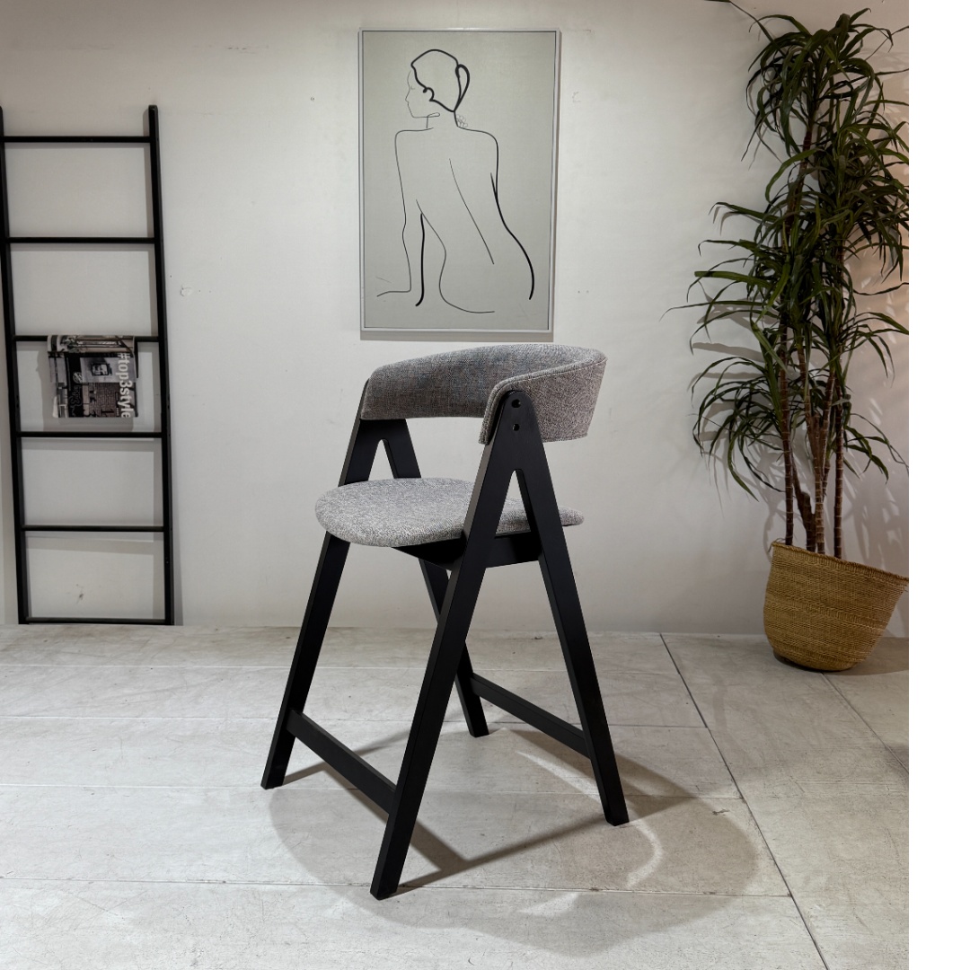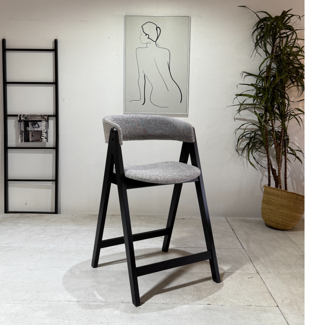The Nicole Bar Stool is designed for both style and functionality. Upholstered in soft grey fabric, it brings a neutral tone that pairs seamlessly with contemporary and classic interiors. The black wooden legs add strength and contrast, creating a bold, modern aesthetic that elevates any bar or counter setting.