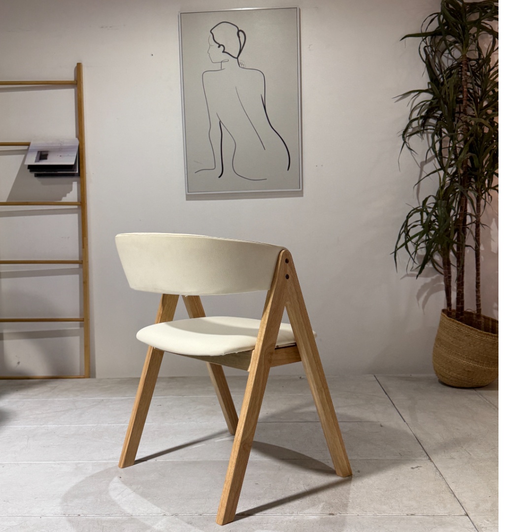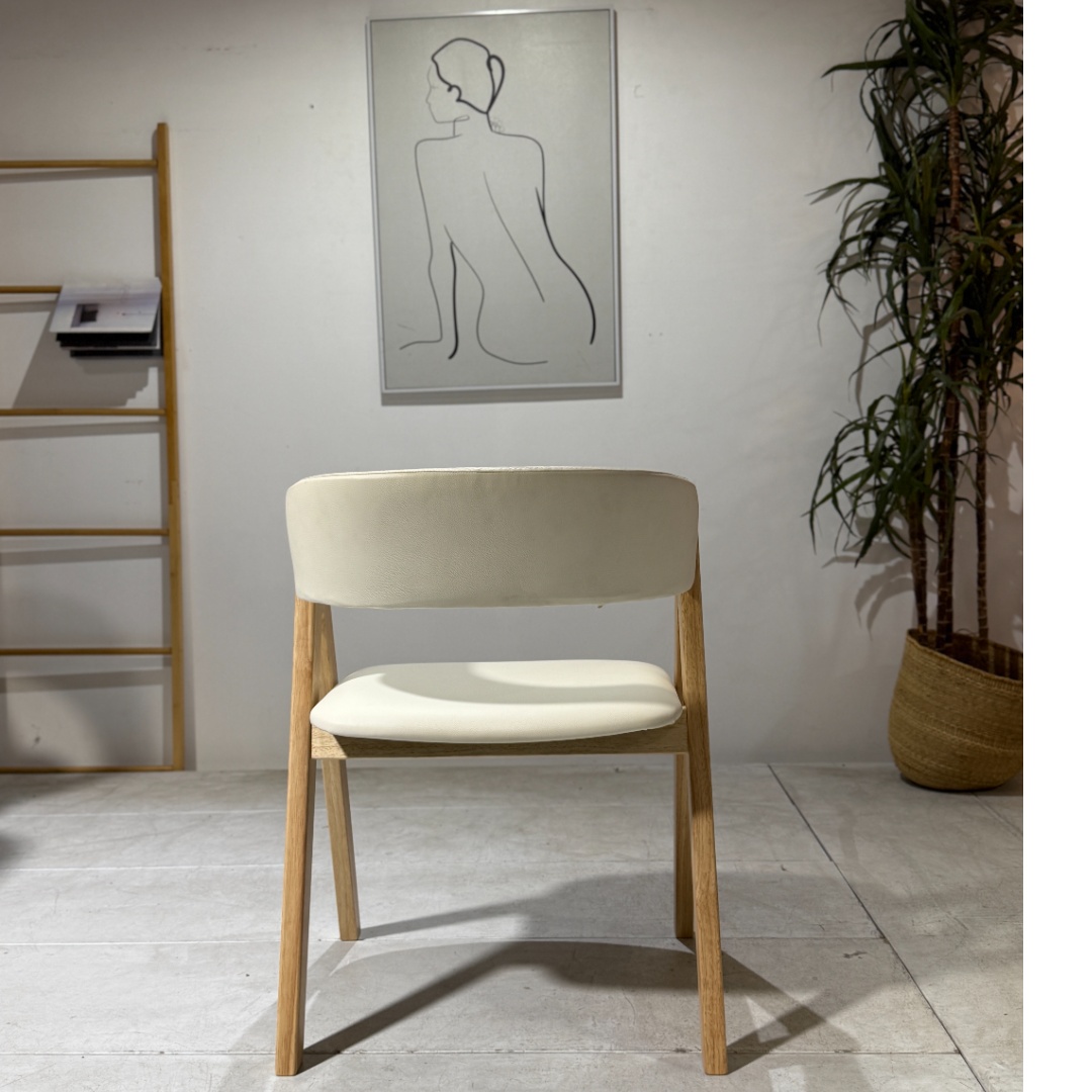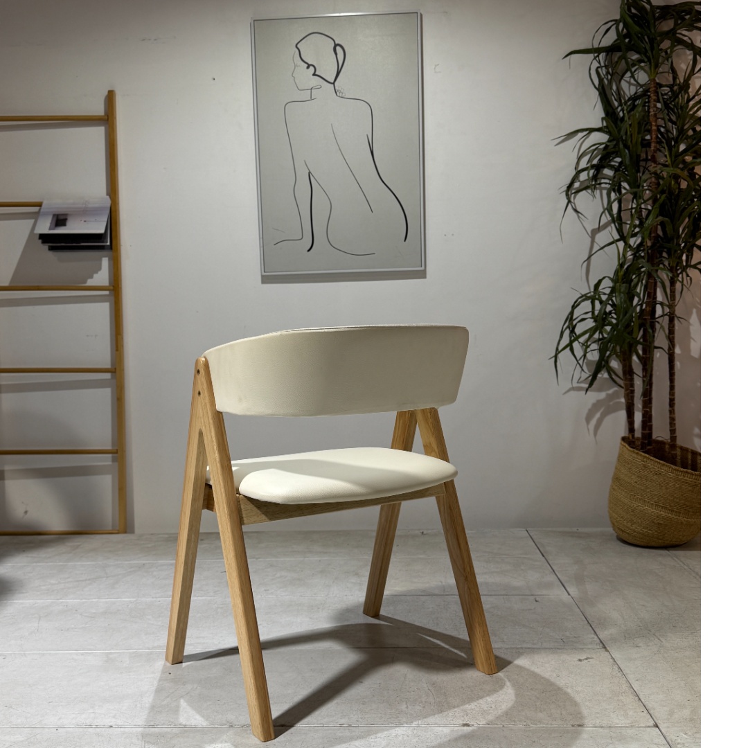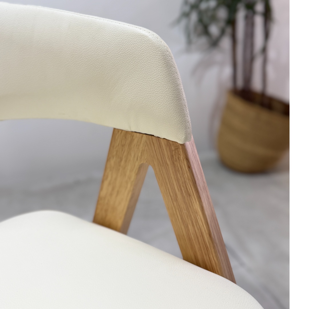 Bright and refined, the Nicole Dining Chair in pearl white PU with natural wooden legs adds a fresh, modern touch to any dining setting