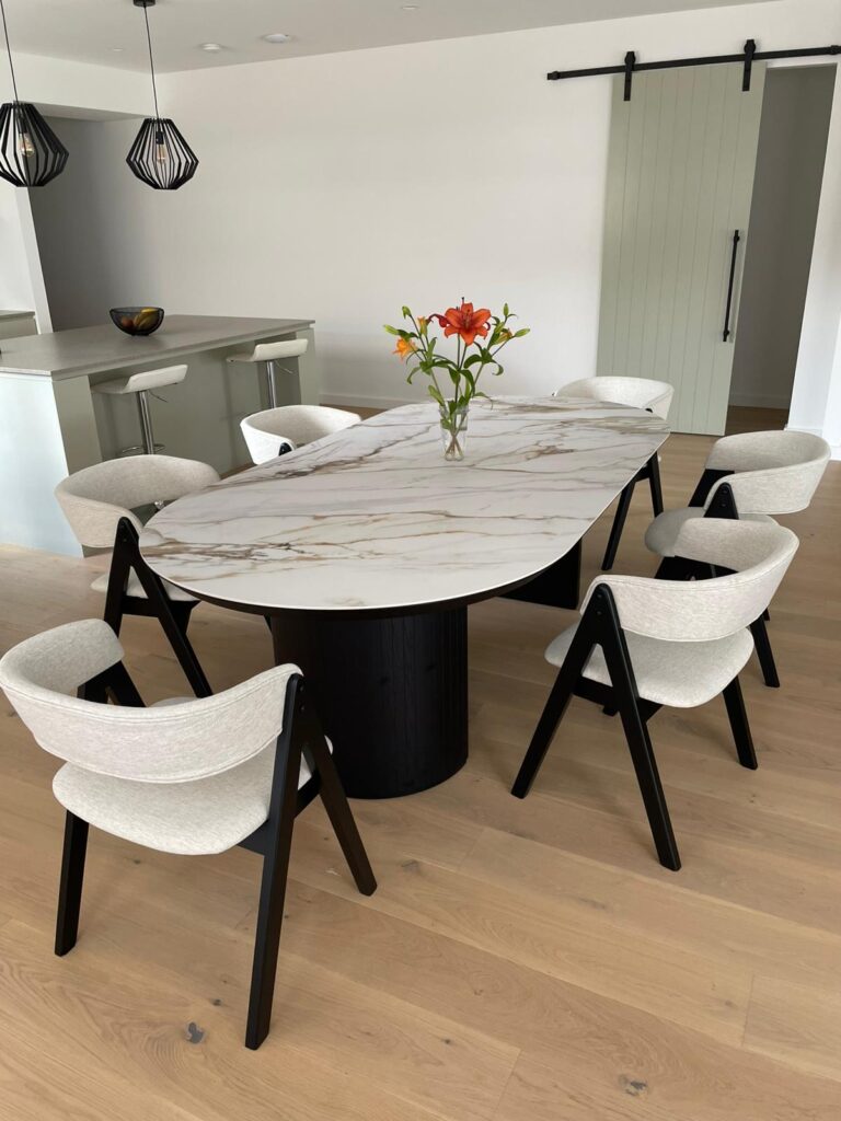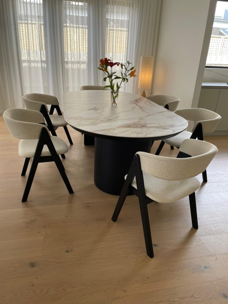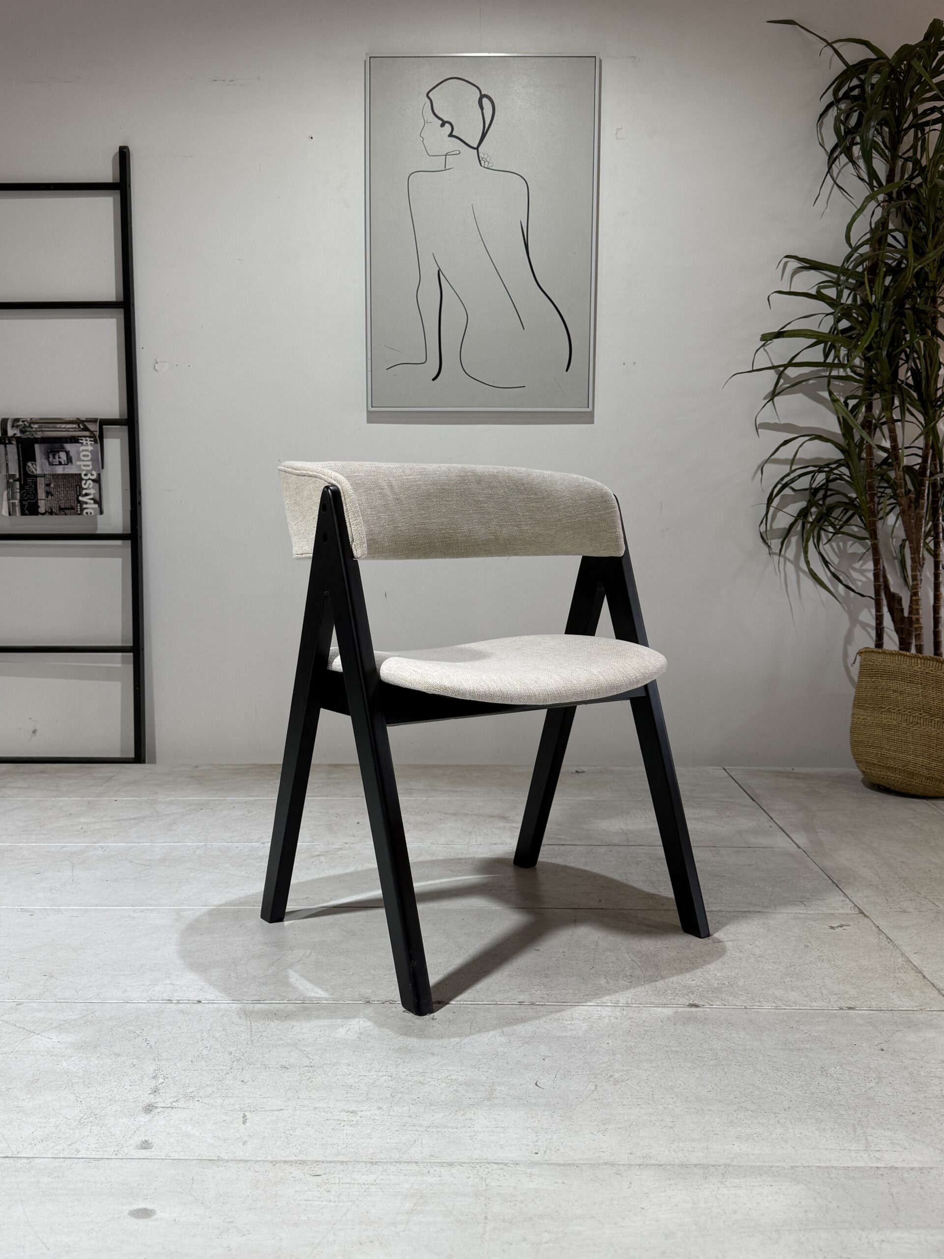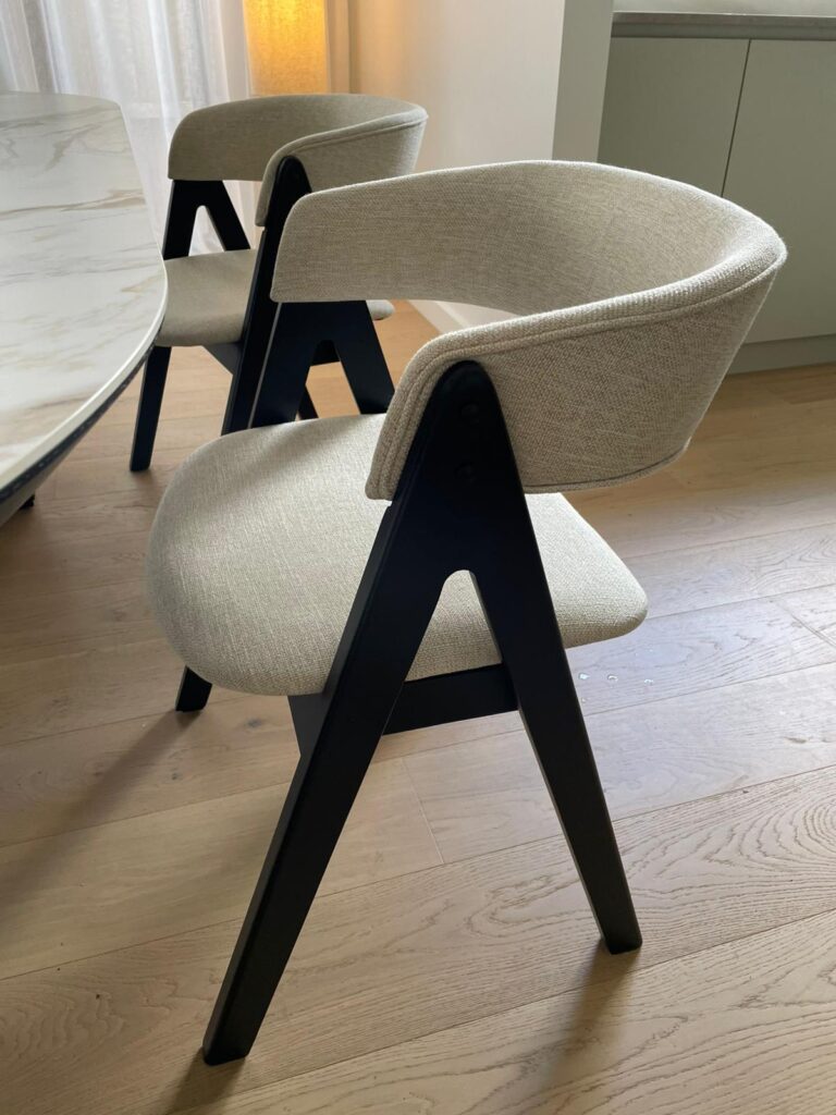 Nicole – Dining Chair | Black legs and Beige Fabric seats