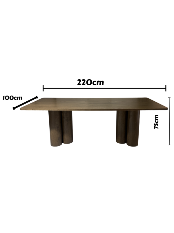 At 220 cm, it comfortably seats 6–8 people—ideal for family gatherings, dinner parties, or open-plan living spaces. The rectangular top rests on solid, subtly tapered legs, providing a timeless silhouette that works beautifully in contemporary, coastal, or minimalist interiors.