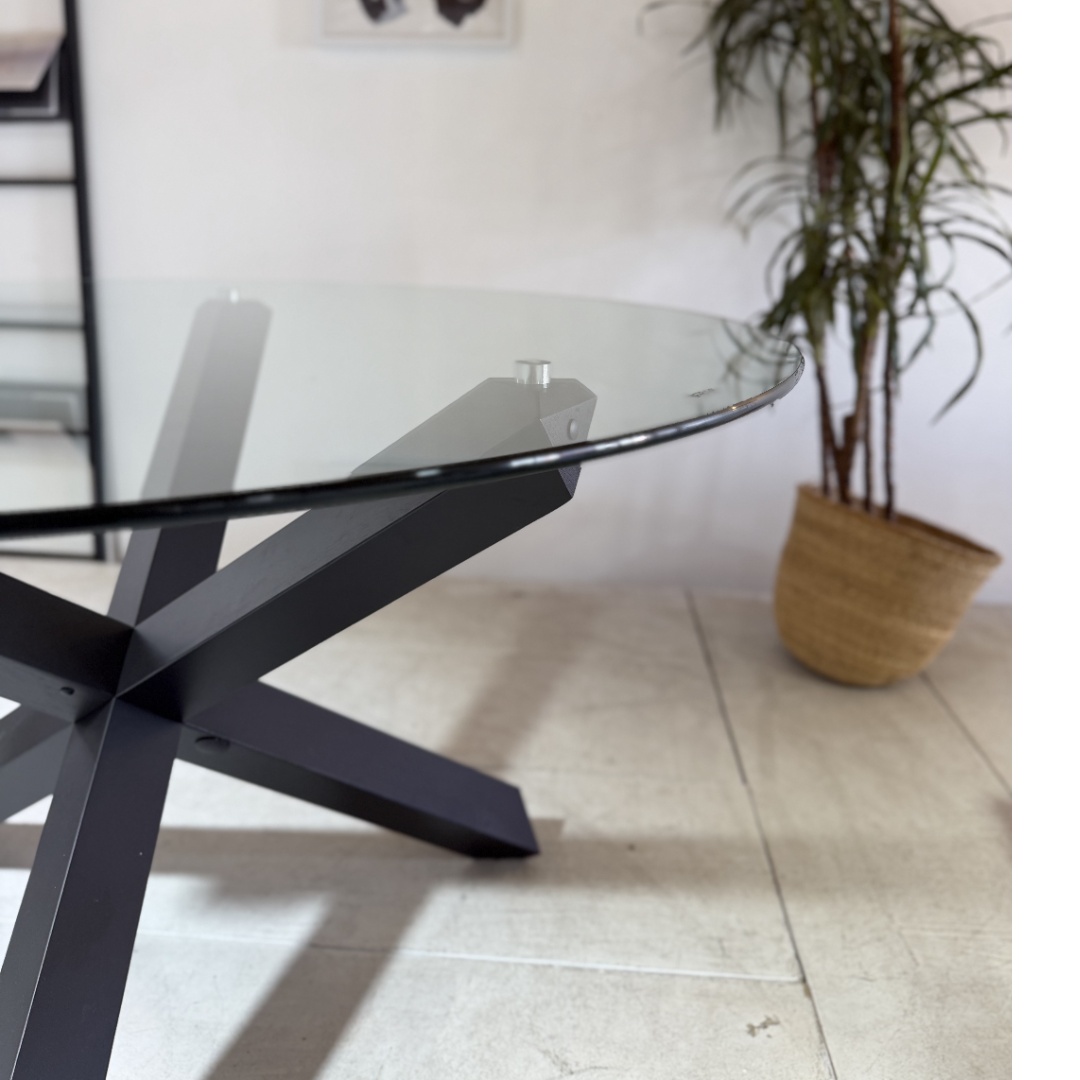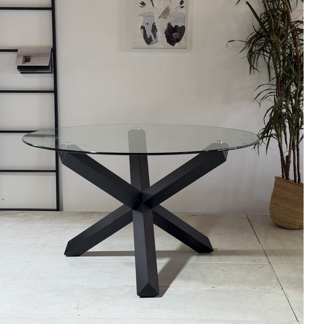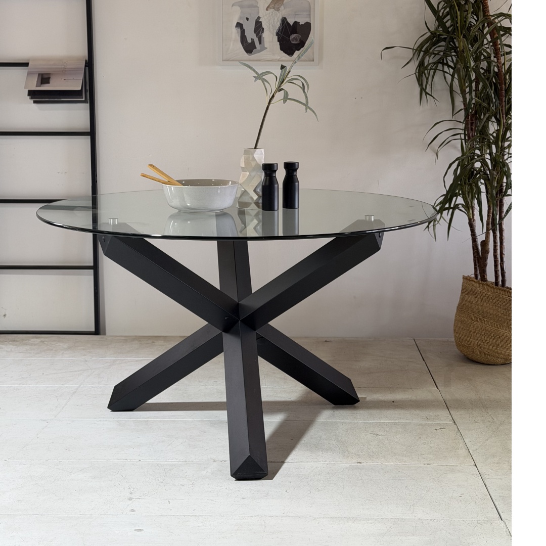 The Ryan Dining Table combines minimalist design with a striking material contrast. Its clear glass tabletop creates an open, airy feel, while the bold black wooden legs add grounding elegance. Built with durability in mind, the tempered glass top resists everyday wear while remaining easy to clean, making it as practical as it is stylish. Ideal for family meals, dinner parties, or casual gatherings, this table comfortably seats 4–6 people while elevating your dining area with contemporary sophistication.