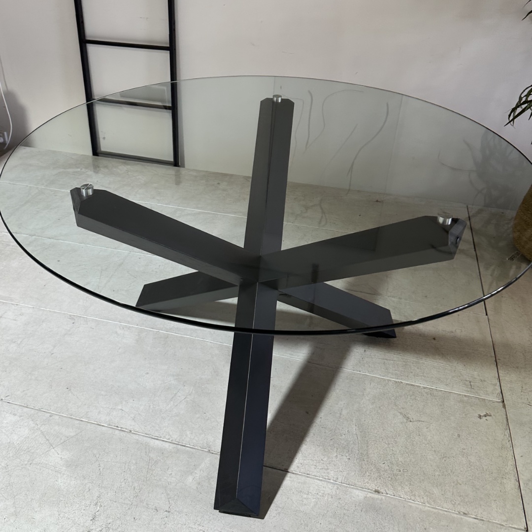 Ryan – Dining Table With Black Wooden Legs And Glass Top