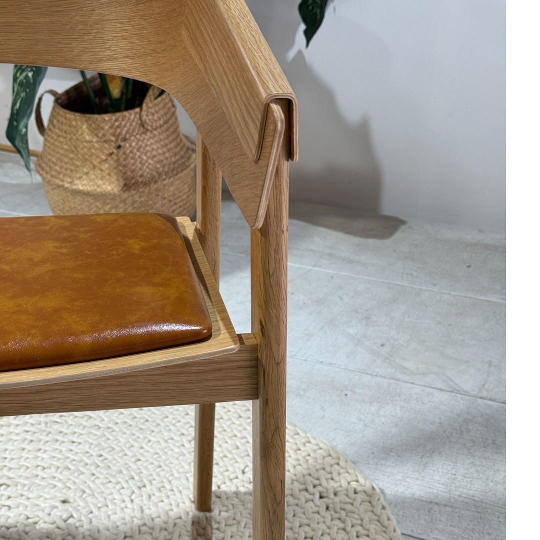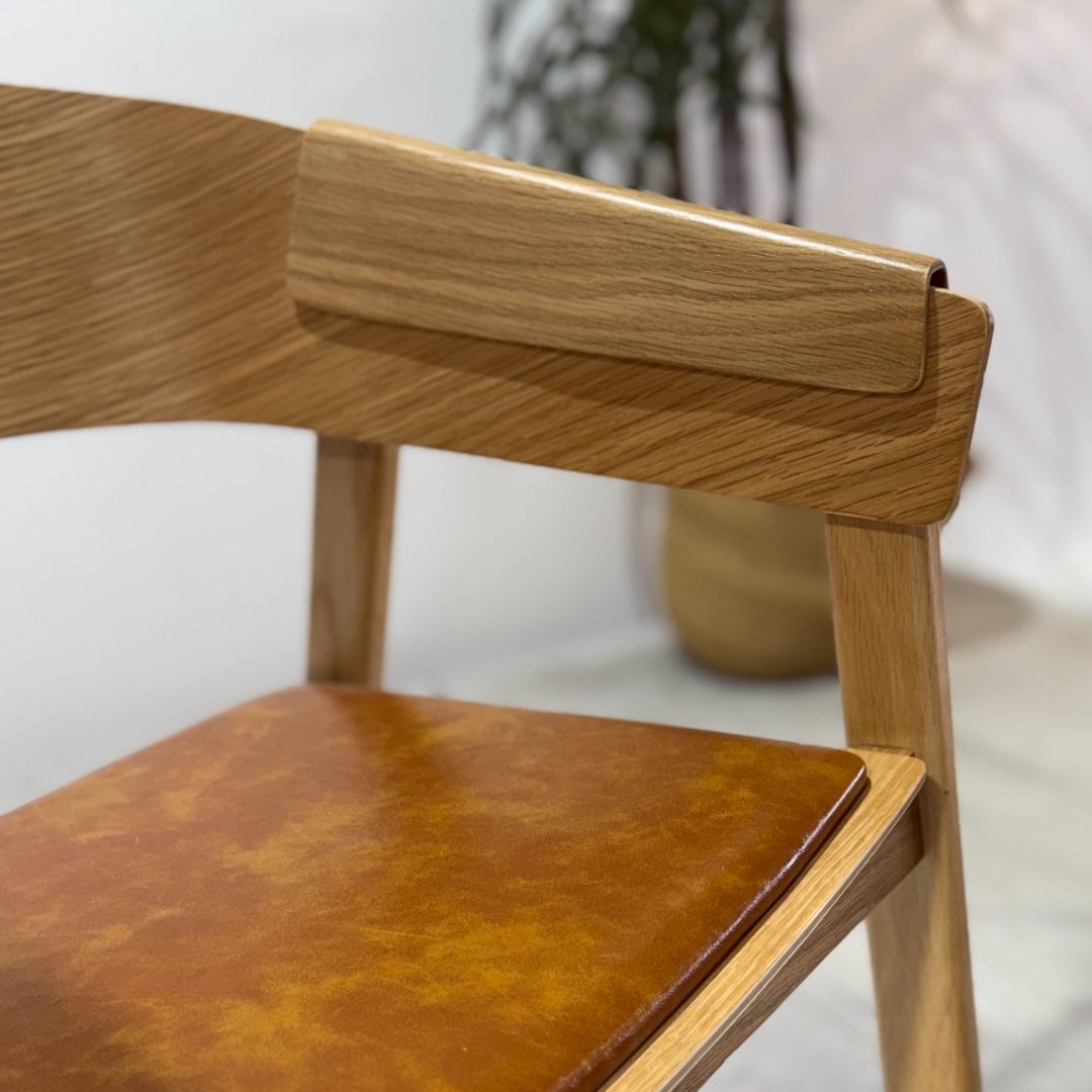 The Stacey Dining Chair combines contemporary design with natural warmth. Upholstered in a rich cognac PU seat, it offers stylish comfort while being easy to clean and maintain. The natural wood frame highlights the grain and tone of timber, giving this chair an organic elegance that suits both classic and modern interiors. Designed for everyday use, the Stacey Dining Chair is sturdy, versatile, and comfortable—perfect for family meals, dinner parties, or casual dining. A practical yet refined choice, it adds character and durability to your dining room.